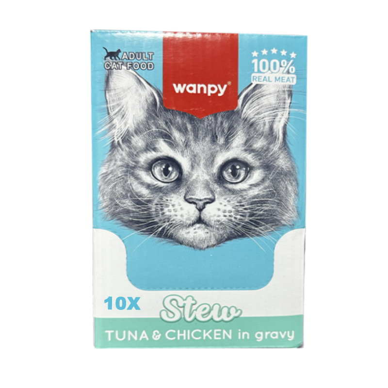 پوچ خورشتی گربه ونپی مدل استیو با طعم تن و مرغ Wanpy Stew With Tuna & Chicken in Gravy بسته 10 عددی