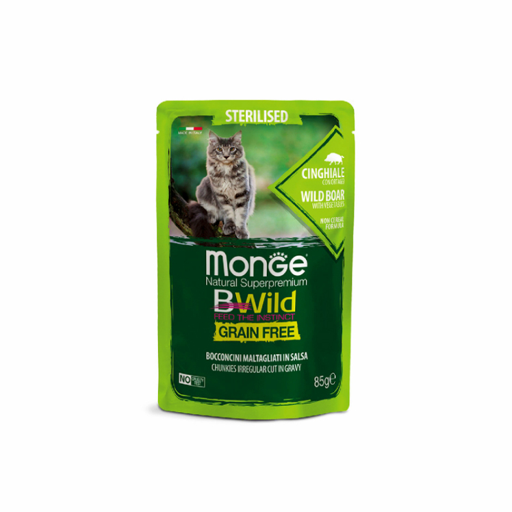 پوچ گربه عقیم مونژ مدل بیوایلد با طعم گوشت گراز وحشی Monge Bwild Cat Pouch Wild Boar وزن 85 گرم اتمام موجودی تاریخ انقضا:7/2029