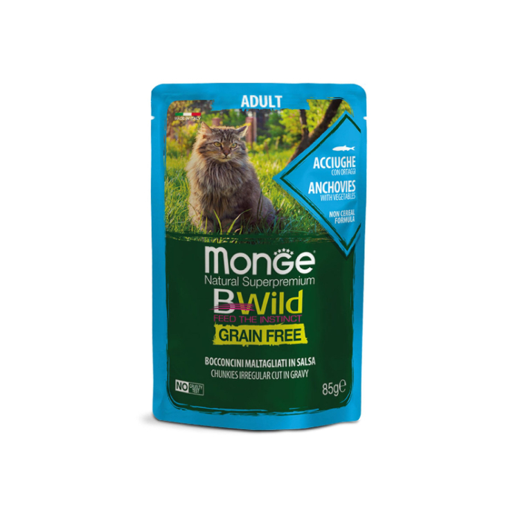 پوچ گربه مونژ مدل بیوایلد با طعم ماهی کولی Monge Bwild Cat Pouch with Anchovies وزن 85 گرم اتمام موجودی تاریخ انقضاء: 05/2029