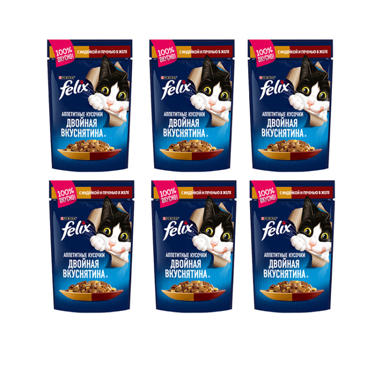 پوچ گربه فلیکس با طعم بوقلمون و جگر Felix Turkey & Liver بسته 6 عددی اتمام موجودی تاریخ انقضاء : 09/2027