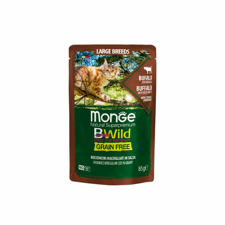 پوچ گربه مونژ مدل بیوایلد با طعم گوشت بوفالو Monge Bwild Chunkies Cat Pouch Buffalo وزن 85 گرم اتمام موجودی تاریخ انقضا:7/2029