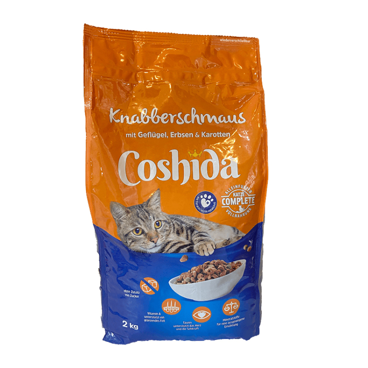غذای خشک گربه پس از پختهشدن مواد تشکیلدهنده آن تحتفشار گرم قرار میگیرد و به شکل کامل خشک میگردد و به همین دلیل این غذا رطوبت بسیار پایینی دارد. کمبود رطوبت در این غذا باعث میشود ماندگاری بالاتر و نگهداری آسانتری داشته باشد. این غذا به شکل بیسکویتهای کوچکی برای مصرف گربهها تولید میشود و برای گربههایی که به جویدن علاقهمندند بسیار لذیذ و خوشخوراک است. درصورتیکه حیوان از مشکلات دهانی و دندانی رنج ببرد و یا با کمبود آب بدن مواجه باشد، غذای خشک مناسب او نخواهد بود و باید حتماً از غذای تر یا مرطوب برای حیوان استفاده شود.