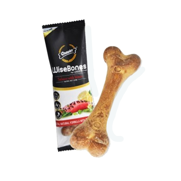 تشویقی سگ استخوان ژلاتینی بدون دانه گناولرز با طعم ماهی سالمون و لیمو Gnawlers Wise Bones Salmon With Lemon Flavour وزن 15 گرم اتمام موجودی تاریخ انقضاء : 03/2026