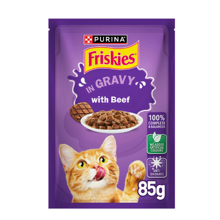 پوچ گربه فریسکیز با طعم گوشت گاو در سس Friskies With Beef in Gravy وزن 85 گرم اتمام موجودی تاریخ انقضاء : 07/2025