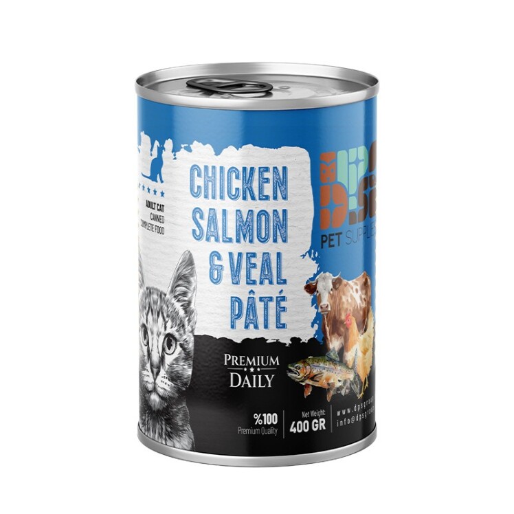 کنسرو غذای گربه دی پی اس پته با طعم مرغ و سالمون و گوساله وزن 800 گرم ۱۵۰,۰۰۰ تومان۱۲۰,۰۰۰ تومان افزودن ۲۰ درصد