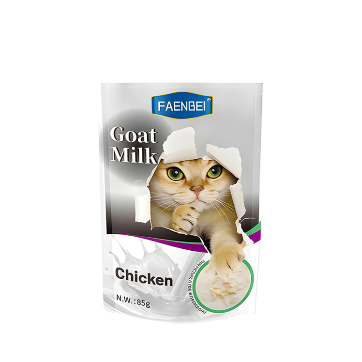 پوچ گربه فنبی با ماهی کاد و مرغ در شیر بز Faenbei Cat Goat Milk with Cod & Chicken Pouch وزن 85 گرم به زودی