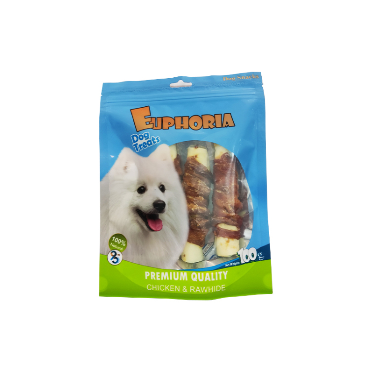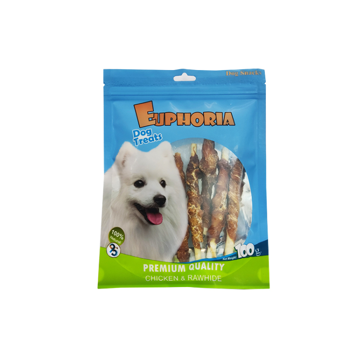 تشویقی سگ یوفوریا با طعم مرغ و پوست خام مدل دورپیچ باریک Euphoria Dog Treat Chicken & Rawhide وزن 100 گرم اتمام موجودی تاریخ انقضاء : 03/2027