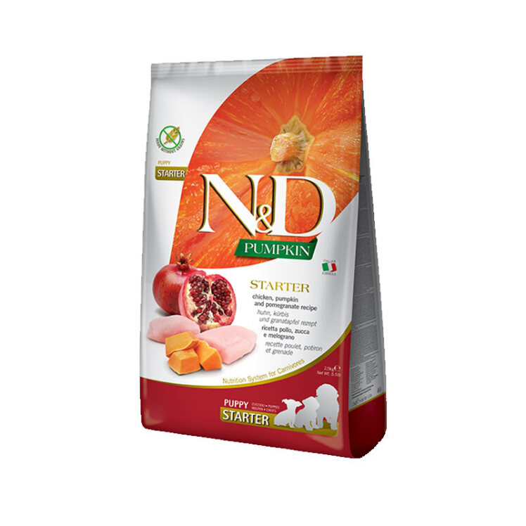 غذای خشک توله سگ با طعم مرغ و انار ان اند دی N&D Puppy Starter With Chicken & Pomegranate وزن 800 گرم اتمام موجودی تاریخ انقضاء : 05/2025