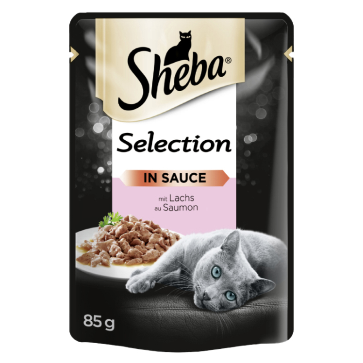 پوچ گربه با طعم سالمون در سس شیبا Sheba Salmon In Sauce وزن 85 گرم اتمام موجودی تاریخ انقضاء : 02/2025