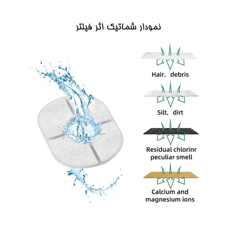 دارای فیلتر ۳ مرحلهای: الیاف پرچگالی، زغال فعال و رزین تبادل یونی