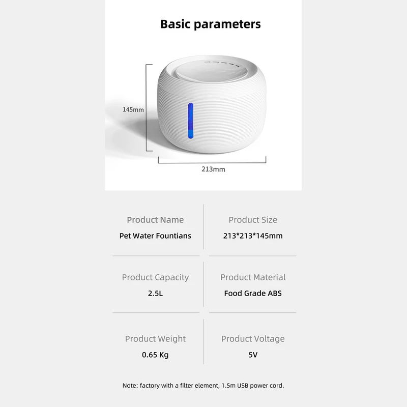 آبخوری اتوماتیک سگ و گربه به همراه تصفیه Ultra Quiet Smart Fountain حجم 2.5 لیتر