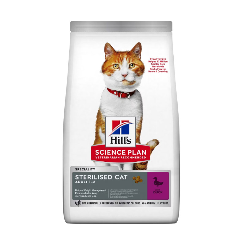 غذای خشک گربه عقیم شده هیلز با طعم گوشت اردک Hill’s Sterilised Cat Food With Duck وزن 1.5 کیلوگرم