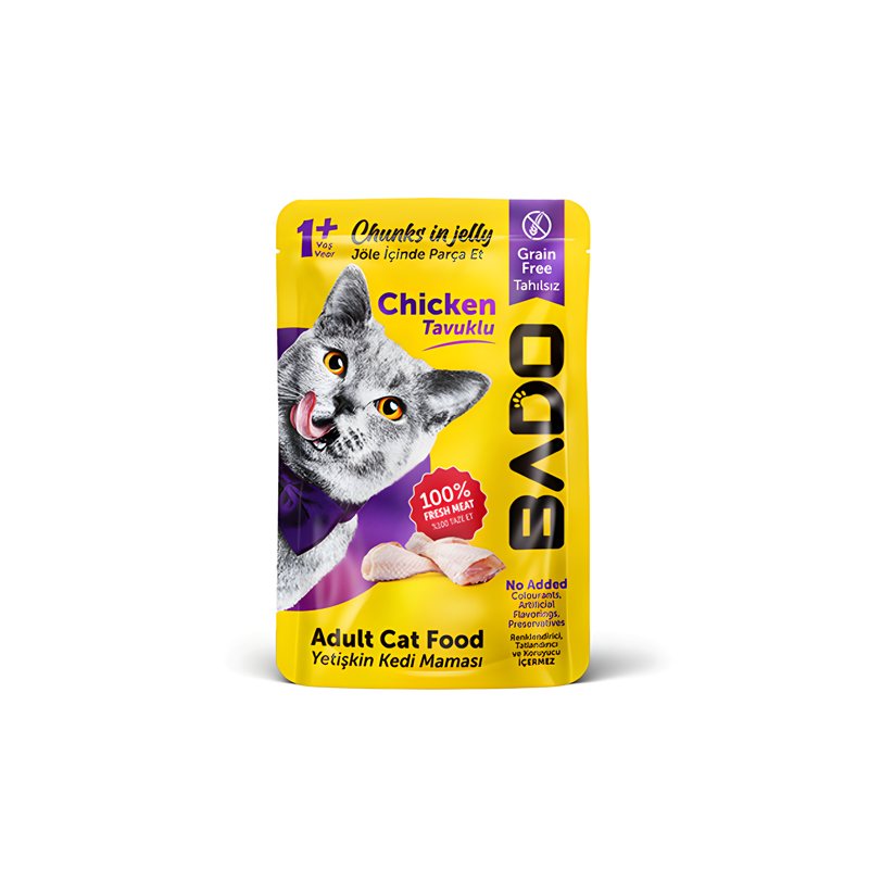 پوچ گربه بالغ بادو با طعم مرغ Bado Adult Cat Pouch with Chicken وزن 85 گرم