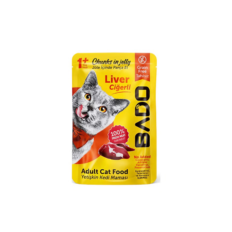 پوچ گربه بالغ بادو با طعم جگر Bado Adult Cat Pouch with Liver وزن 85 گرم