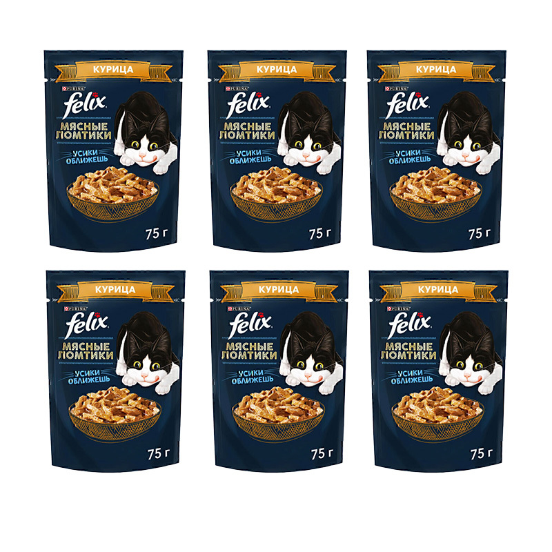 پوچ گربه فلیکس فیله مرغ در سس Felix Meat Slices Chicken in Sauce بسته 6 عددی