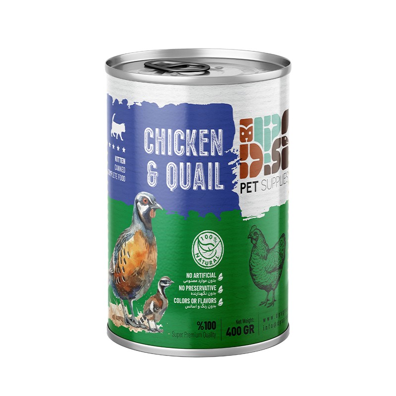 کنسرو غذای بچه گربه دی پی اس نچرال با طعم مرغ و بلدرچین وزن 400 گرم