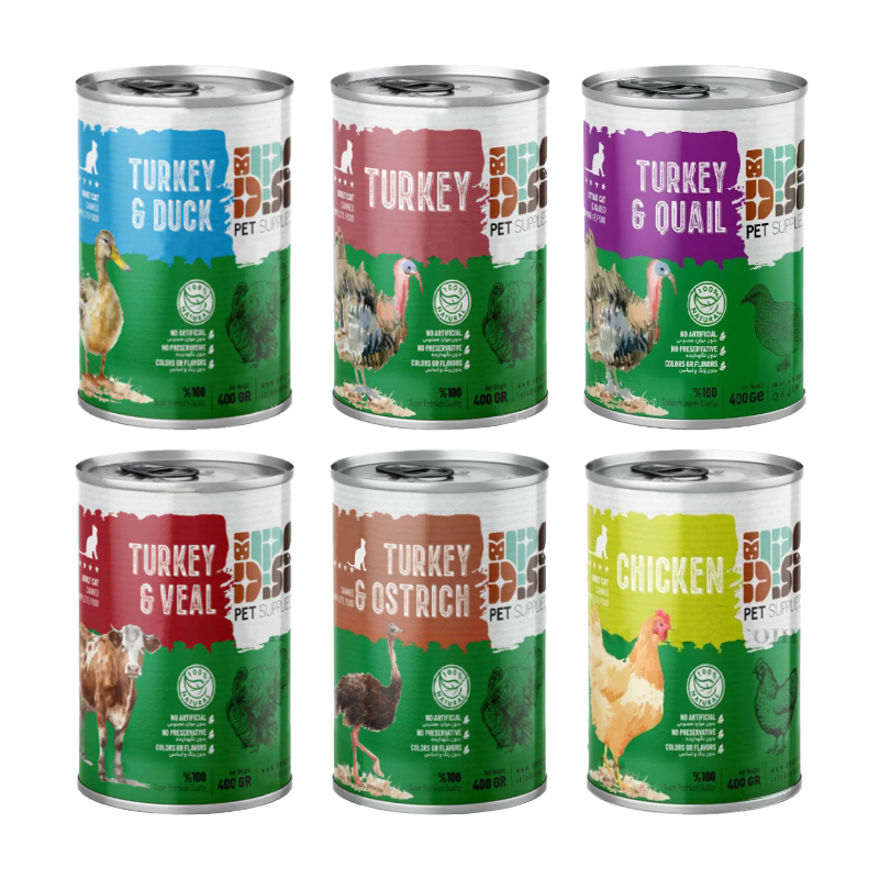 - مجموعه شامل ۶ عدد کنسرو دی پی اس نچرال ۴۰۰ گرمی با طعمهای: