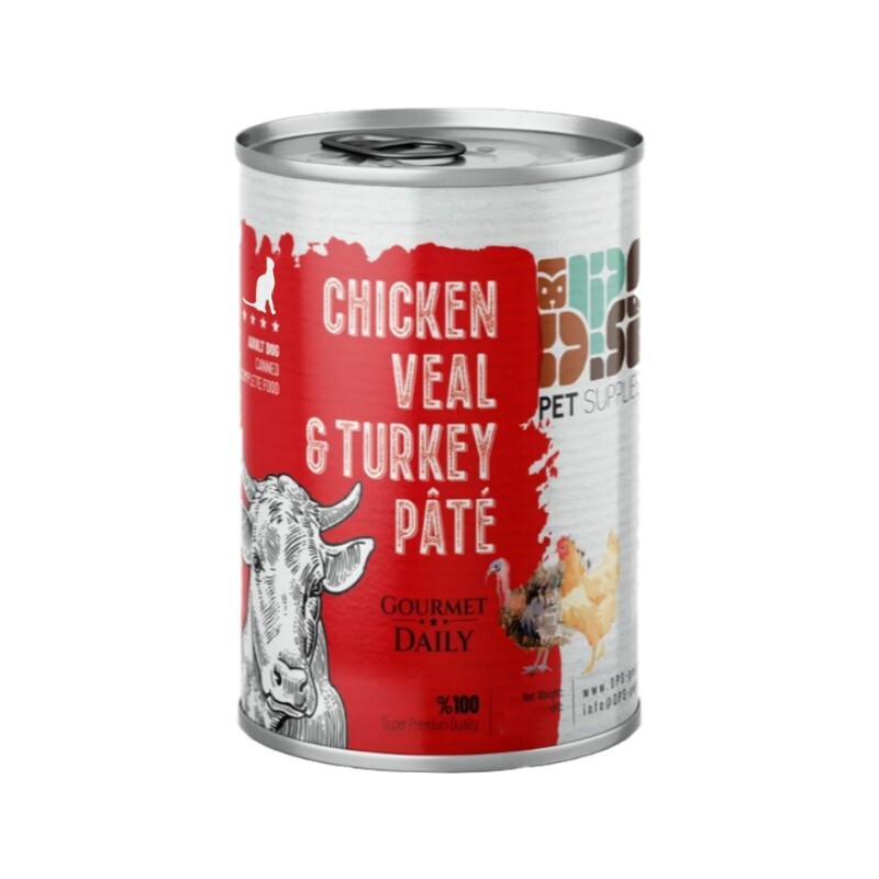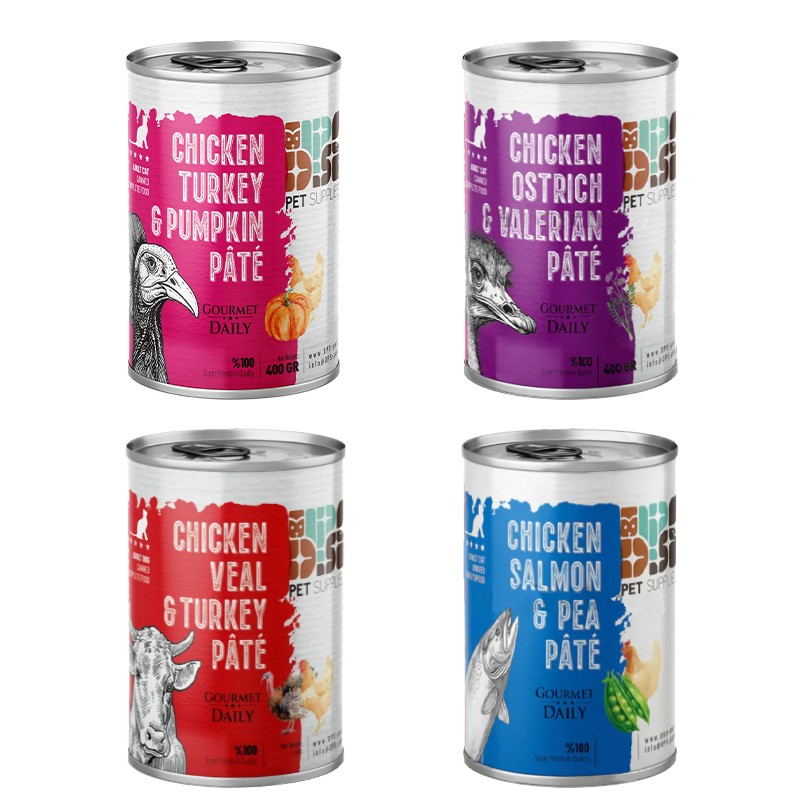 - مجموعه شامل 4 عدد کنسرو دی پی اس سوپر پریمیوم ۴۰۰ گرمی با طعمهای: