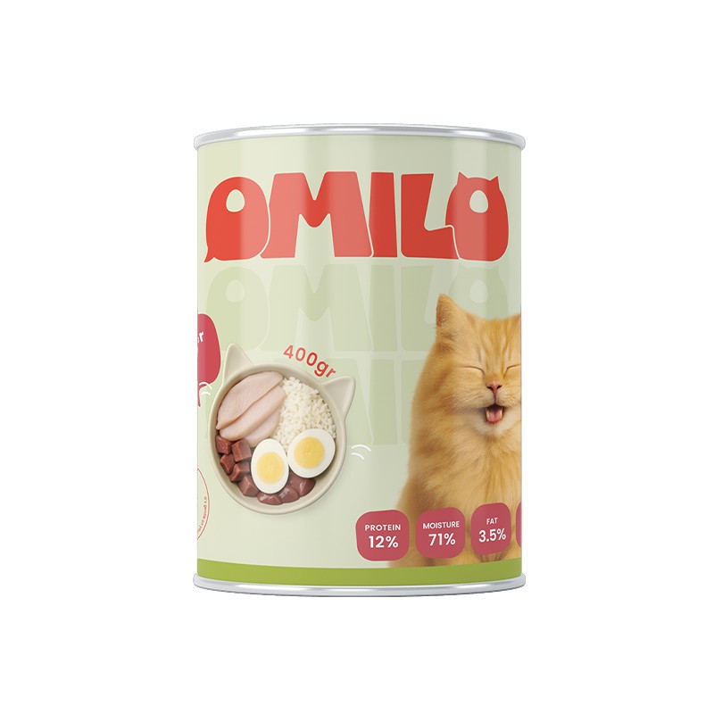 کنسرو غذای گربه اومیلو چانک با طعم مرغ و جگر وزن 400 گرم