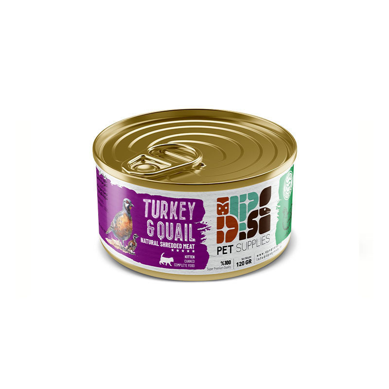 کنسرو غذای بچه گربه دی پی اس نچرال با طعم گوشت بوقلمون و بلدرچین وزن 120 گرم