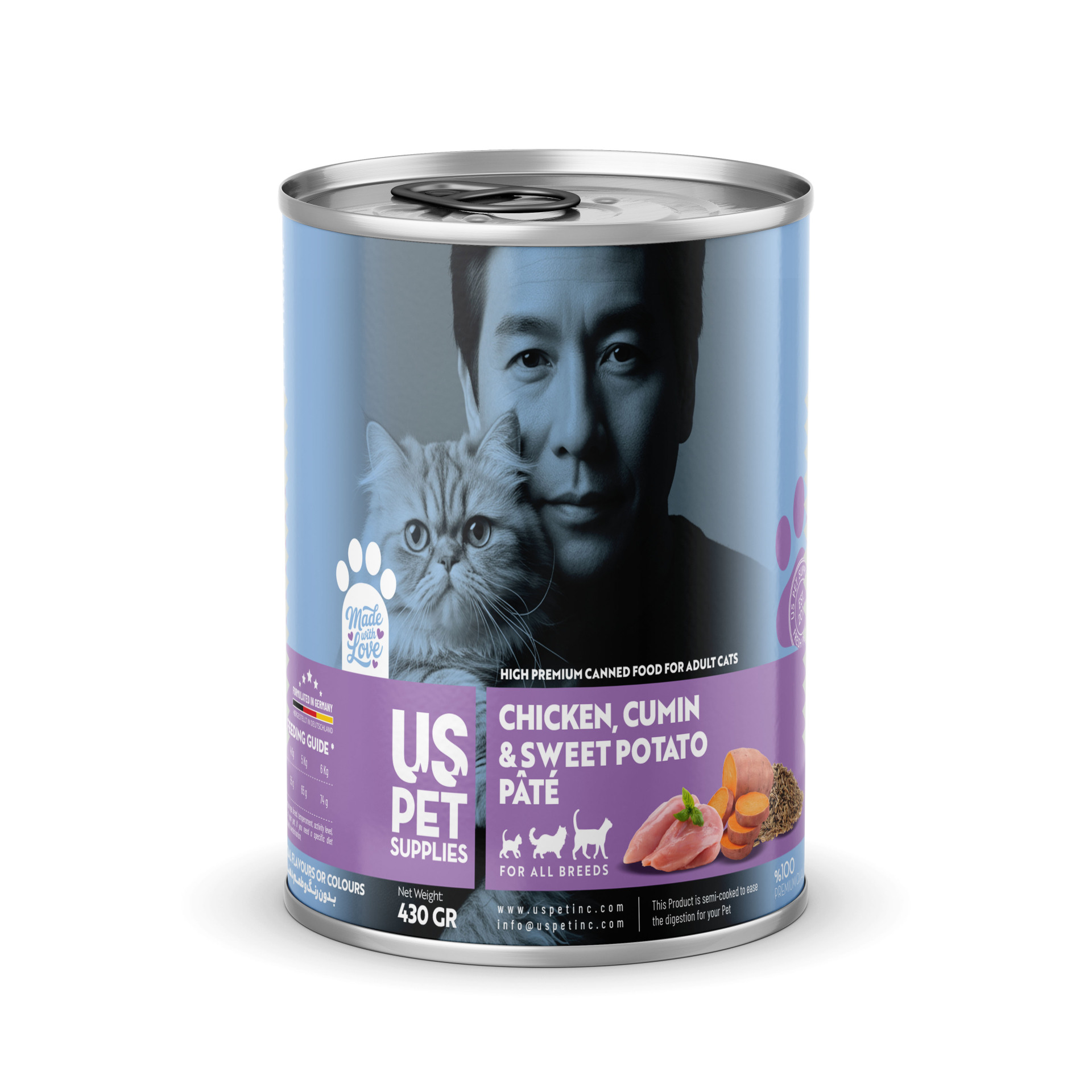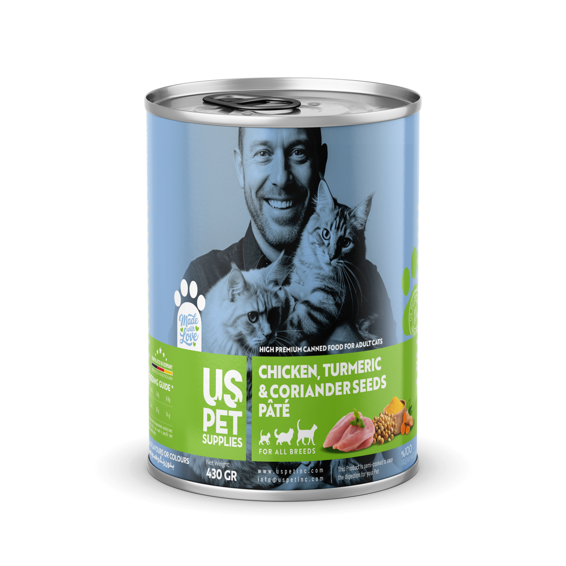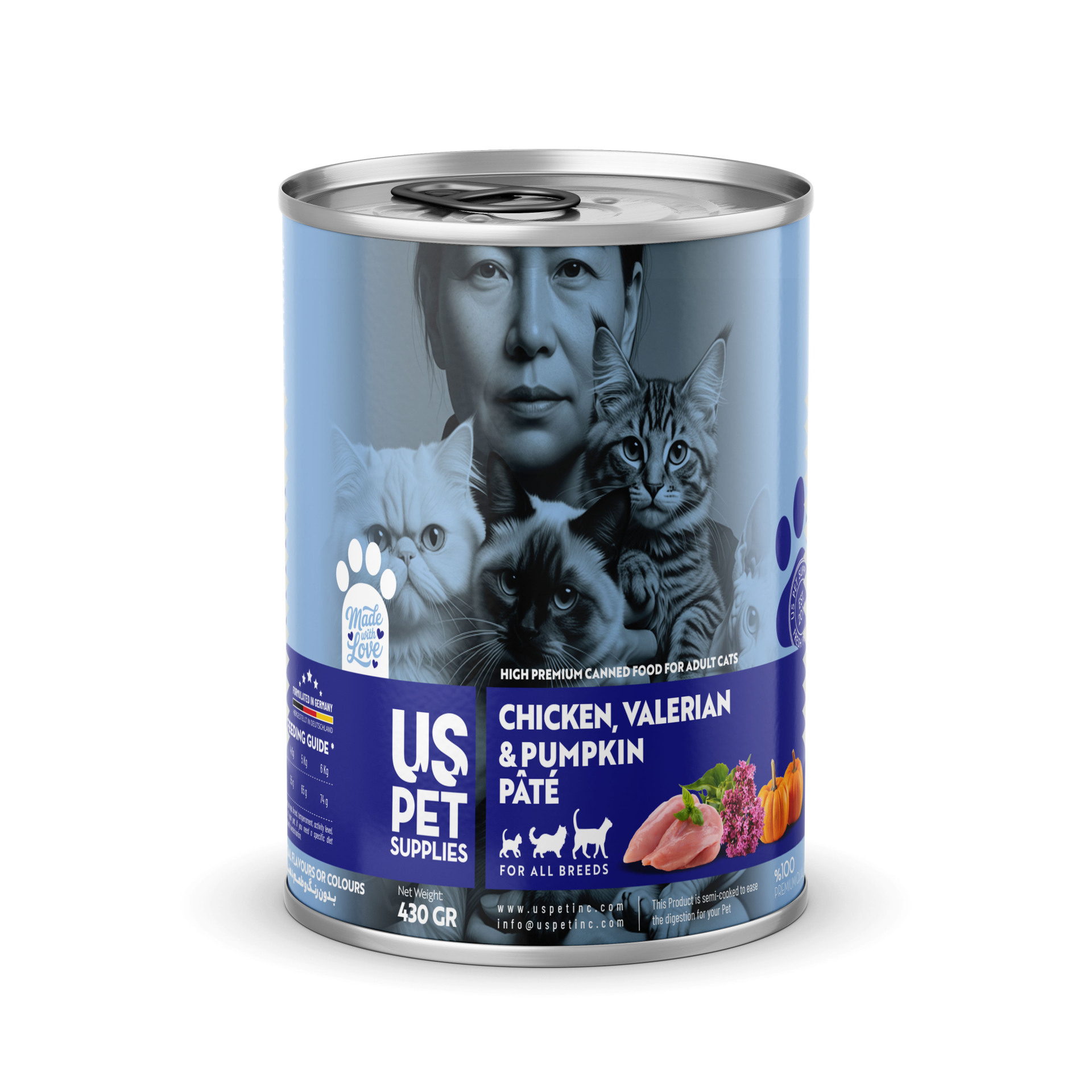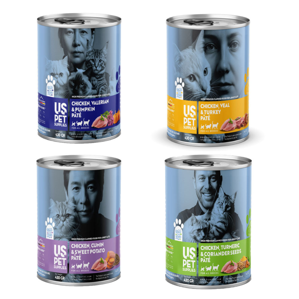 - مجموعه شامل ۴ عدد کنسرو یو اس پت گربه 430 گرمی با طعمهای: