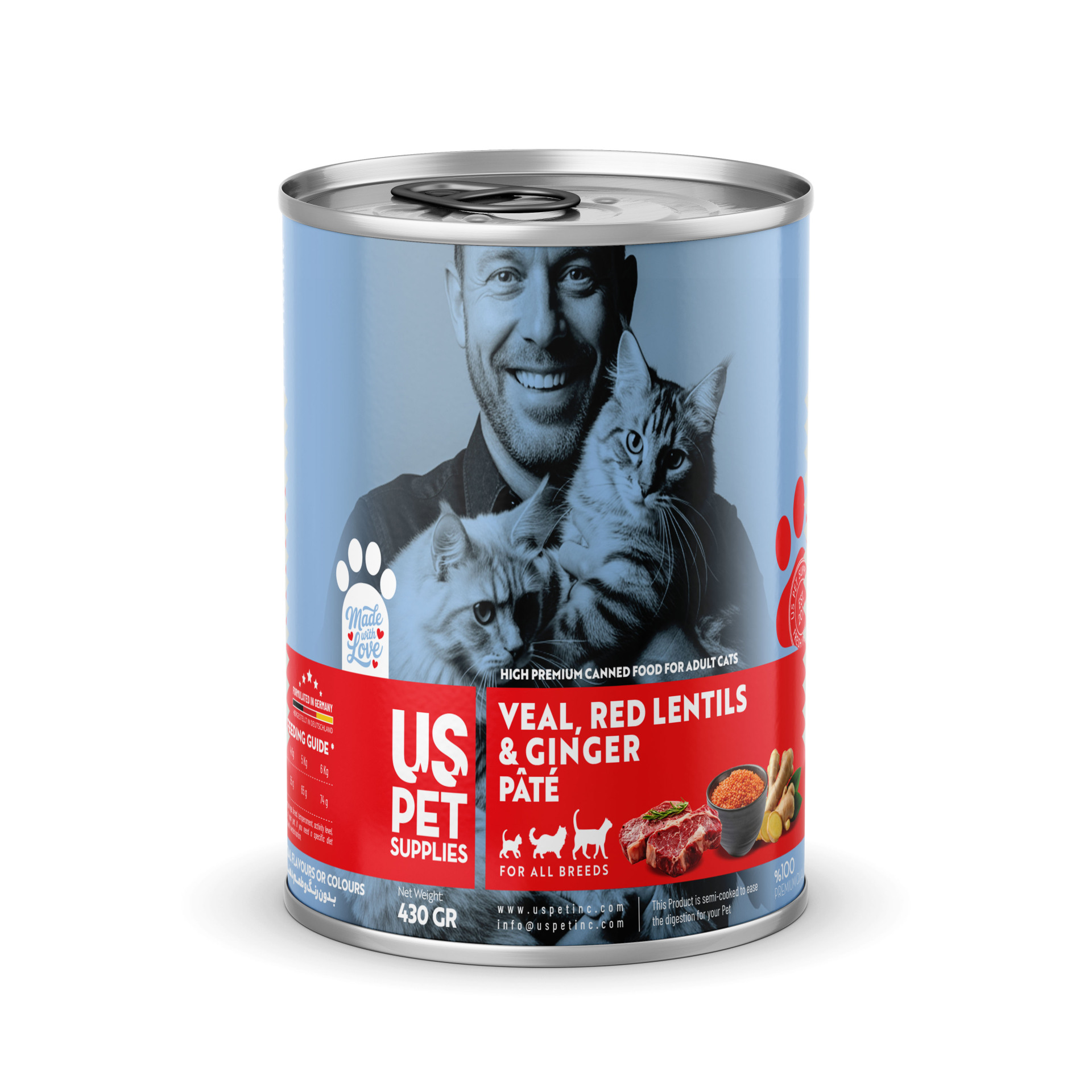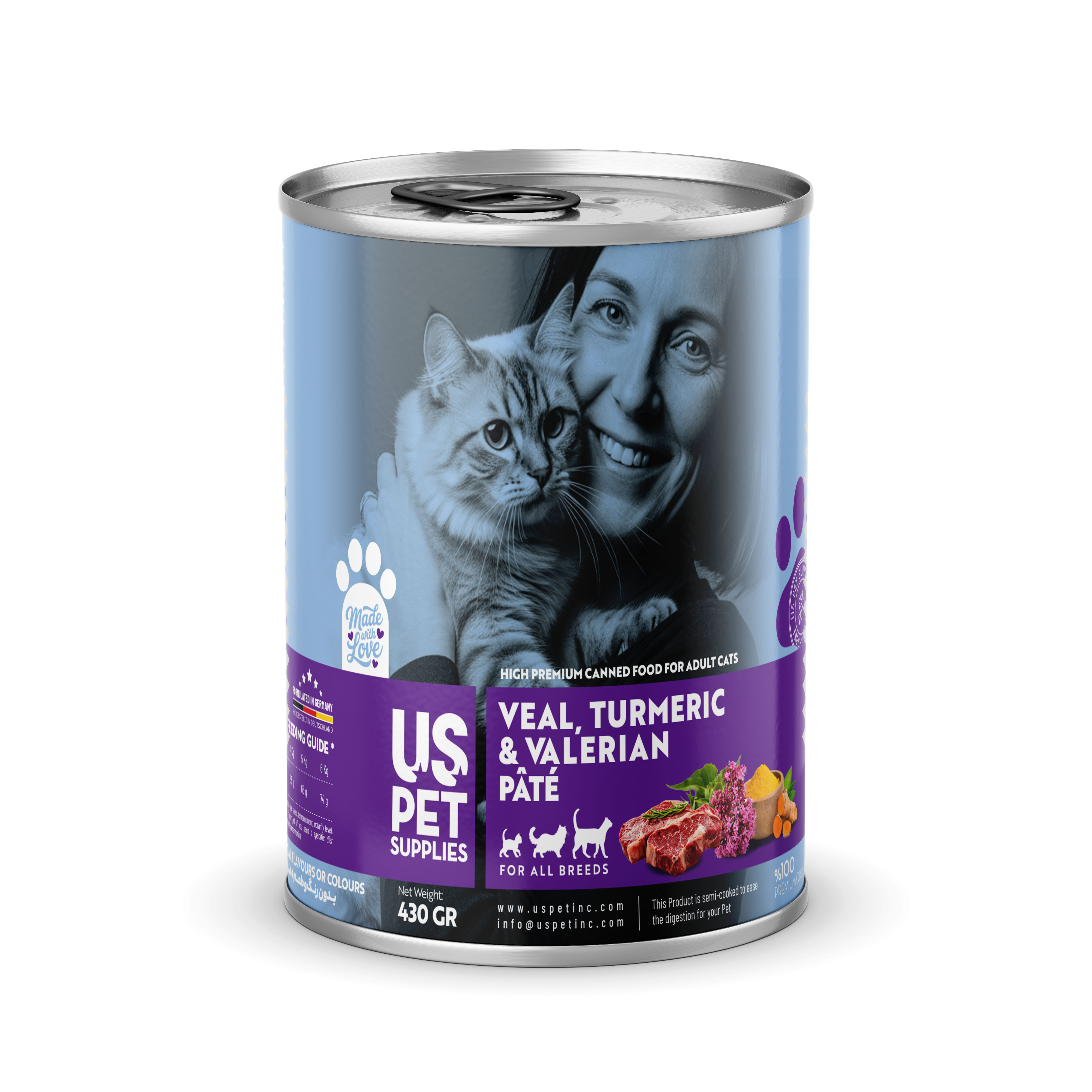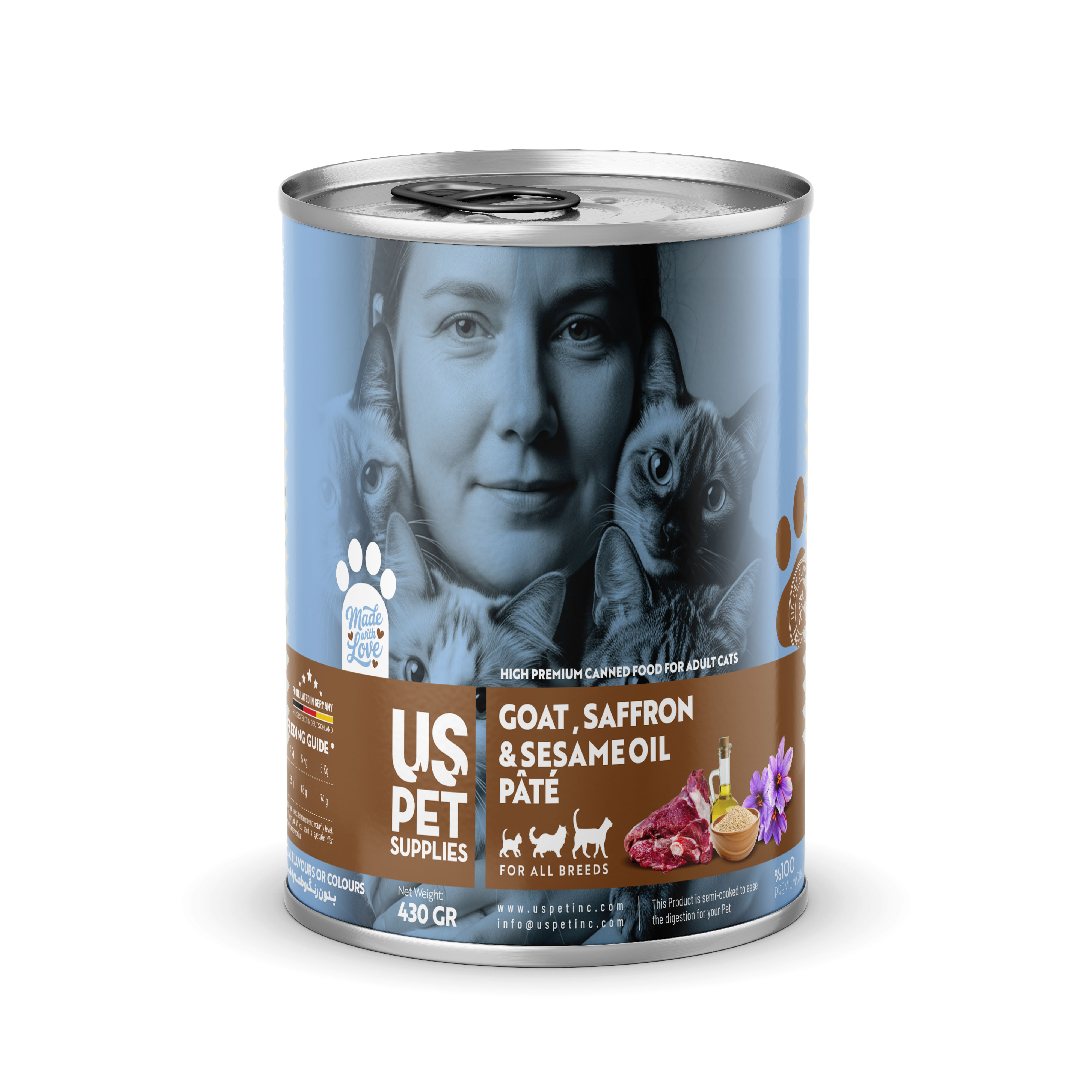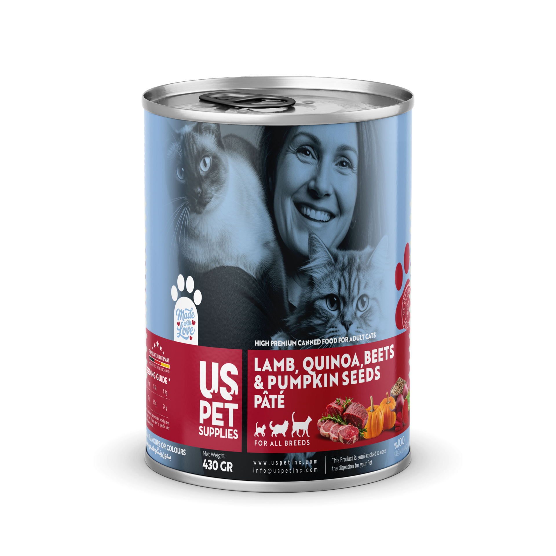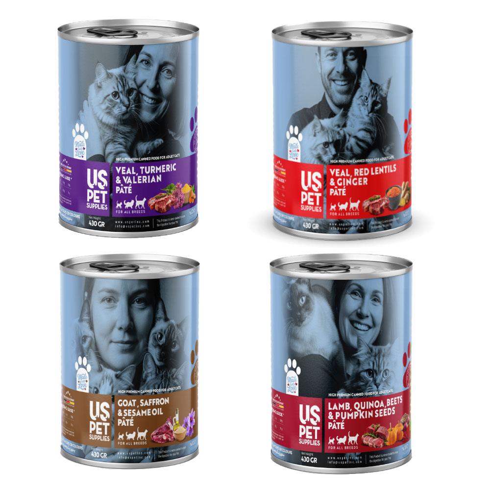 - مجموعه شامل ۴ عدد کنسرو یو اس پت گربه 430 گرمی با طعمهای: