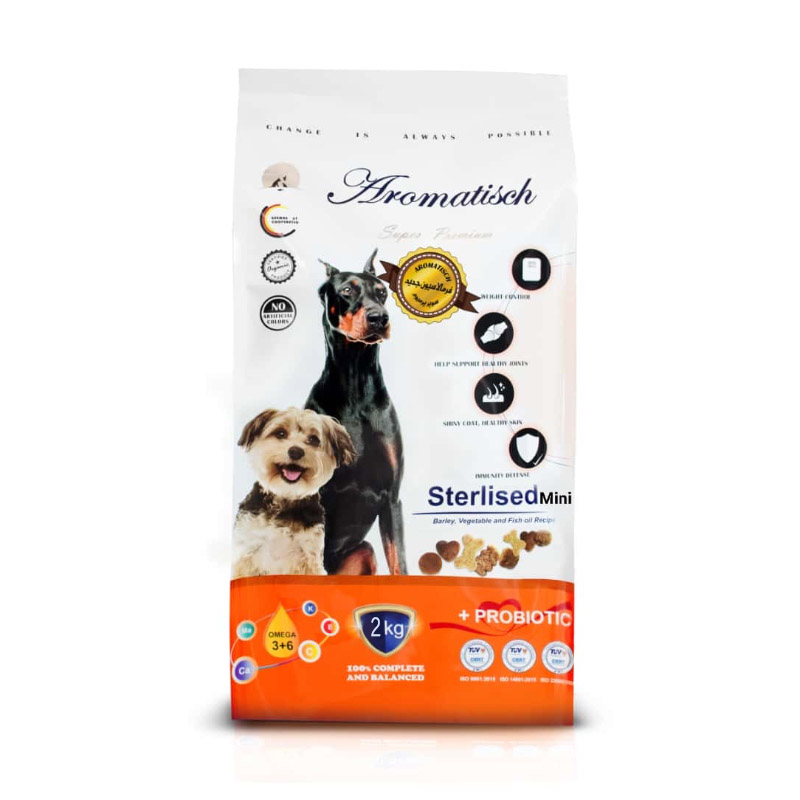 غذای خشک سگ بالغ نژاد کوچک عقیم شده آروماتیش با طعم گوشت بره وزن 2 کیلوگرم