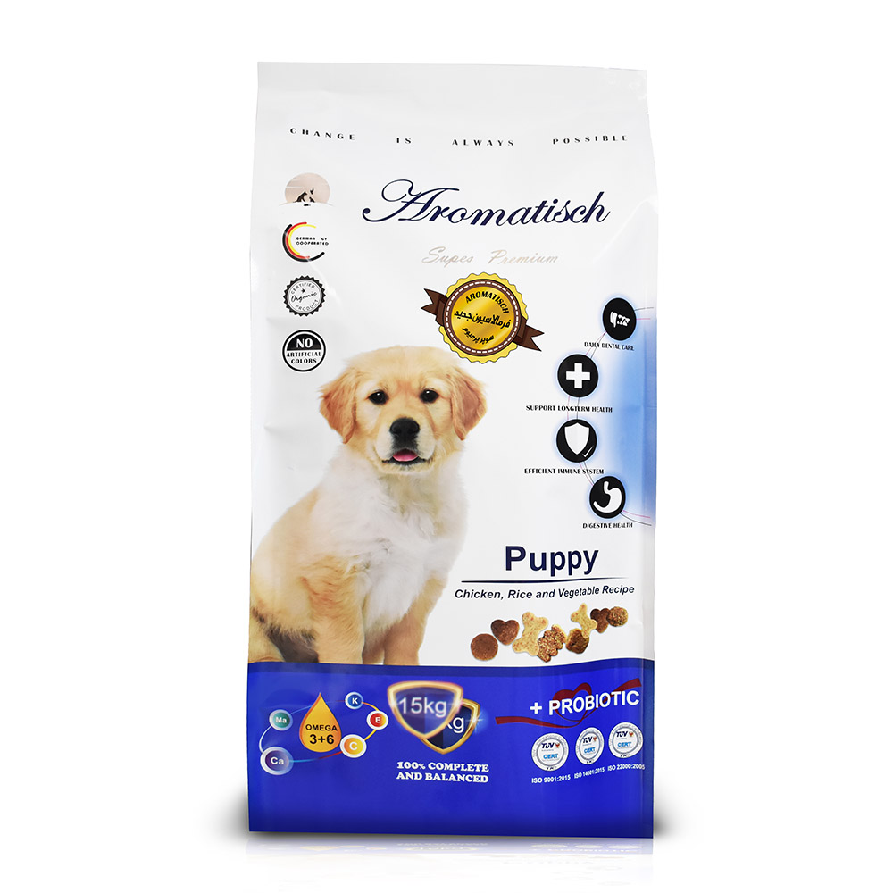 غذای خشک توله سگ نژاد کوچک آروماتیش با طعم گوشت بره وزن 15 کیلوگرم