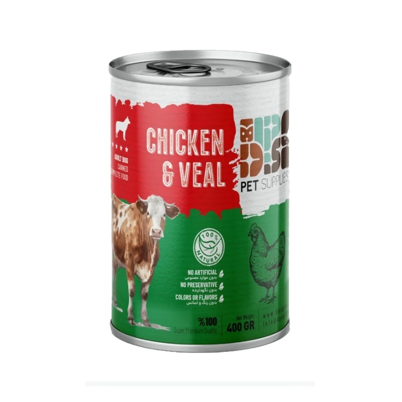 کنسرو سگ دی پی اس نچرال با طعم گوشت مرغ و گوساله وزن 400 گرم