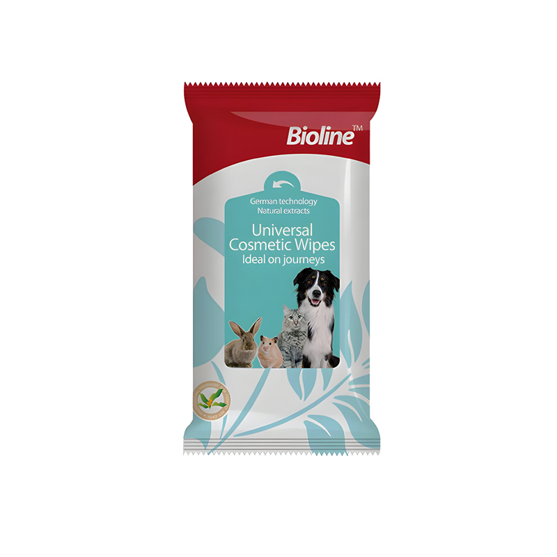 دستمال مرطوب سگ و گربه و جوندگان بایولاین Bioline Pet Wipes بسته ۱۰ عددی