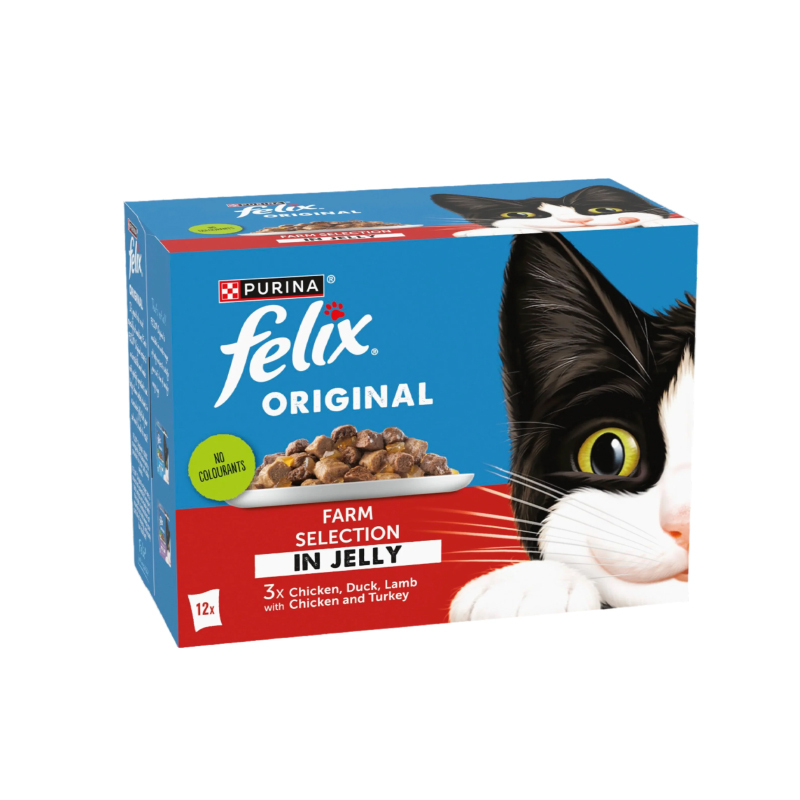 پوچ گربه فلیکس مدل پک مزرعه در ژله Felix Original Farm Selection in Jelly بسته 12 عددی