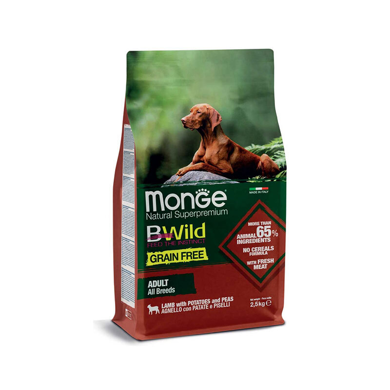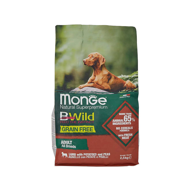 غذای خشک سگ مونژ با طعم گوشت بره و سیب زمینی و نخود فرنگی Monge Bwild Dog Food وزن 2.5 کیلوگرم