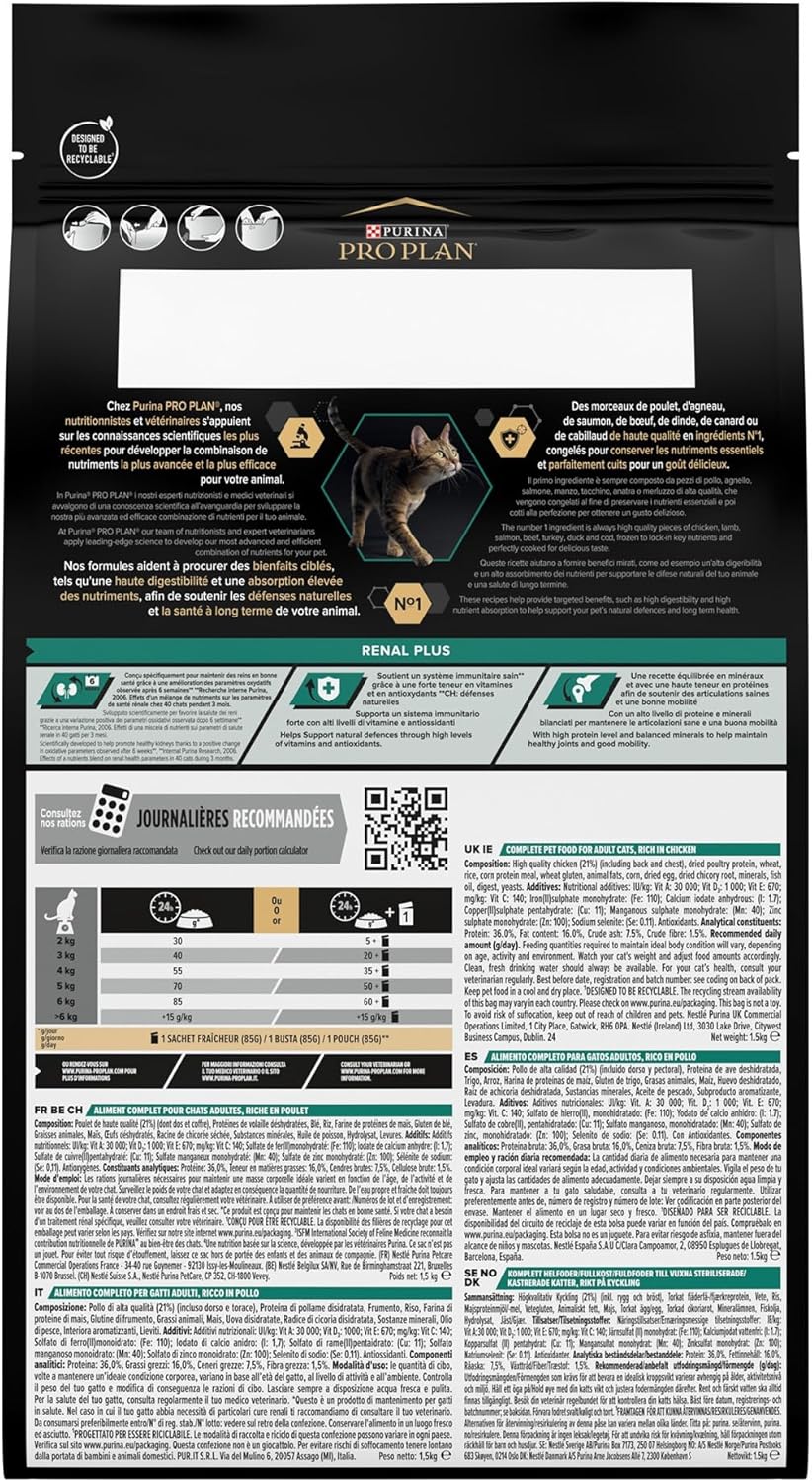 غذای خشک رنال پلاس گربه بالغ پروپلن با طعم مرغ Proplan Adult Renal Plus وزن 10 کیلوگرم