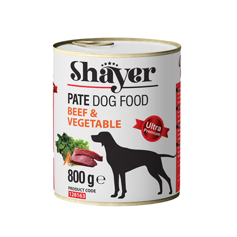 کنسرو غذای سگ با طعم گوشت و سبزیجات شایر Shayer Pate With Beef & Vegetable وزن 800 گرم