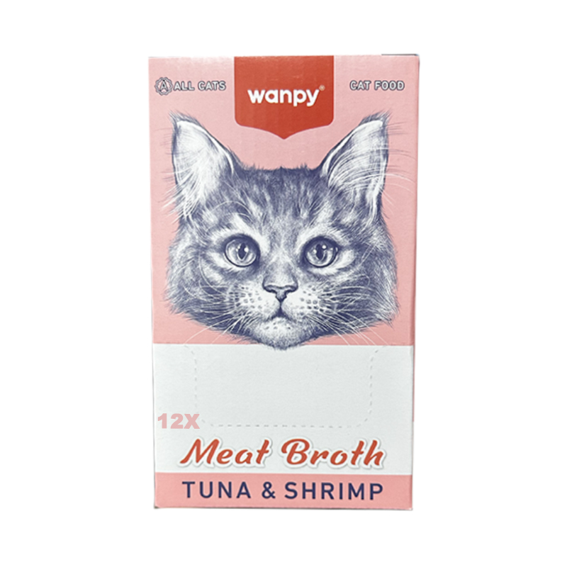 سوپ گربه ونپی با طعم ماهی تن و میگو Wanpy Cat Meat Broth With Tuna And Shrimp بسته 12 عددی