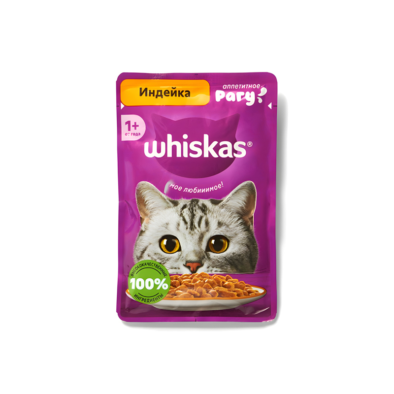 پوچ گربه ویسکاس با طعم بوقلمون مدل راگو Whiskas Cat Ragout with Turkey وزن ۷۵ گرم