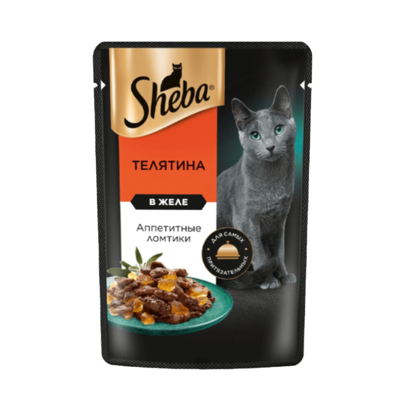 پوچ گربه شیبا با طعم گوشت گوساله در ژله Sheba Appetizing Slices With Veal in Jelly وزن 75 گرم