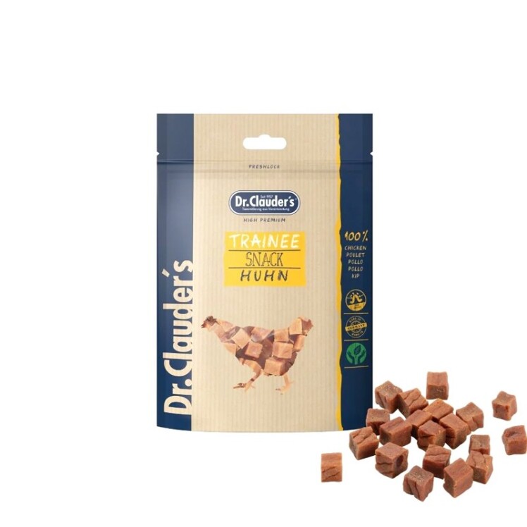 تشویقی سگ بالغ دکتر کلادرز با طعم مرغ Dr. Clauder’s Snack Trainee Chicken وزن 80 گرم اتمام موجودی تاریخ انقضاء : 02/2027